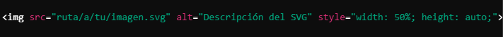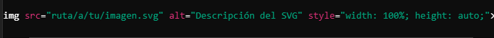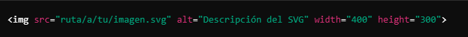 Simplemente especifica la ruta del archivo SVG en el atributo src y proporciona un texto alternativo en el atributo alt para accesibilidad.