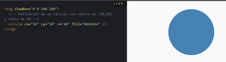 Las imágenes SVG pueden escribirse directamente en el documento HTML mediante la etiqueta svg.
