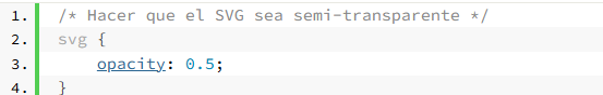 Puedes cambiar la opacidad de un SVG utilizando la propiedad opacity en CSS. Esto permite hacer que el SVG sea más transparente o más opaco.