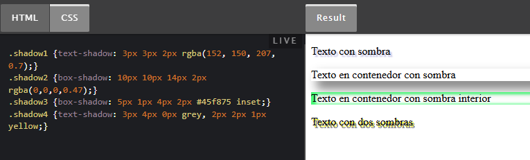 Para aplicar doble sombra se pueden poner dos valores separados con coma.