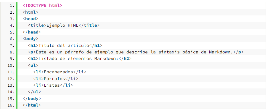 Al abrir el archivo ejemplo.html en tu navegador, verás una página web que contiene un título principal (< h1 > ), un párrafo de texto (< p >), un subtítulo (< h2 >) y una lista (< ul >).