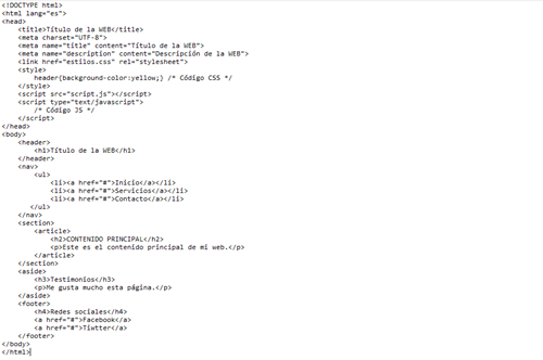 Una de las principales ventajas de HTML5 es la inclusión de elementos semánticos, o marcados semánticos, que nos ayudan a definir las distintas divisiones de una página web.