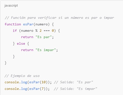 console.log(esPar(7)); // Salida: "Es impar"