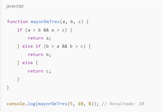console.log(mayorDeTres(5, 10, 8)); // Resultado: 10