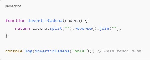 console.log(invertirCadena("hola")); // Resultado: aloh