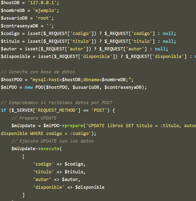 Nuestro código PHP quedaría de la siguiente manera.