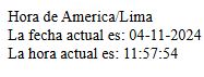 Crea un programa que imprima la fecha y hora actual de la zona horaria America/Lima.