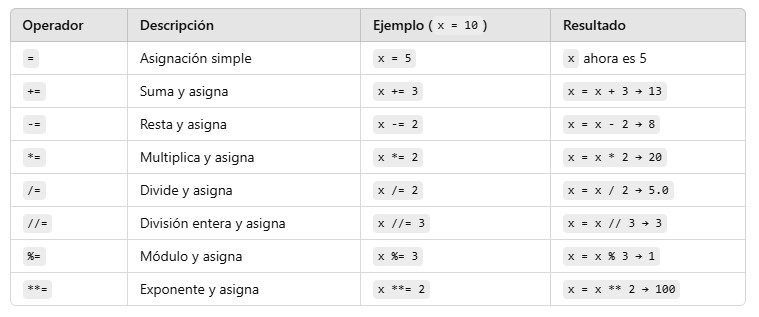 1. Operadores de Asignación.