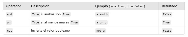 Comparan valores y devuelven True o False.